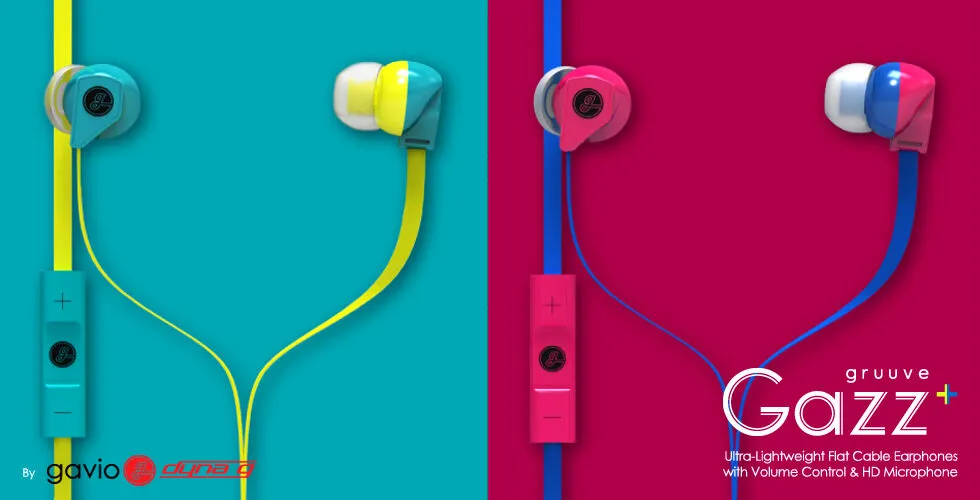 Với màu sắc đa dạng và ấn tượng. Gruuve Gazz+ đã được hoàn thiện thêm với dây cáp phẳng và tai nghe siêu nhẹ. Thêm vào đó là nút chỉnh âm lượng cùng micro HD.